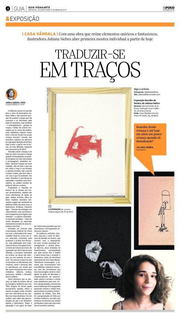 POR YURI FIRMEZA. Texto escrito na ocasião da abertura da exposição “Barulho de Dentro”, de Juliana Siebra, em 2019 (english below)